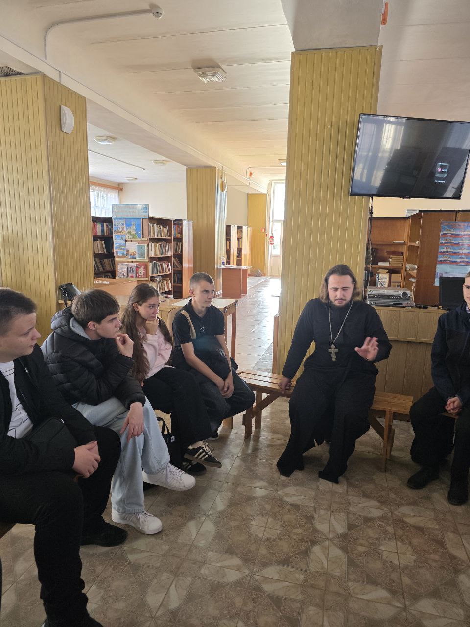 23 октября 2025 года, в читальном зале Прибрежненского аграрного колледжа прошла очередная встреча из цикла духовно-просветительских встреч с иереем Валерием настоятелем храма Корсунской иконы Божией Матери села Лесновка Сакского района.