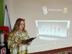 Перед присутствующими с докладом, содержащим статистические данные и научные факты о вреде курения, выступила обучающаяся 10-В группы Савина Варвара. Ее выступление было подкреплено познавательным видеоматериалом, наглядно демонстрирующим последствия курения для различных органов и систем организма.