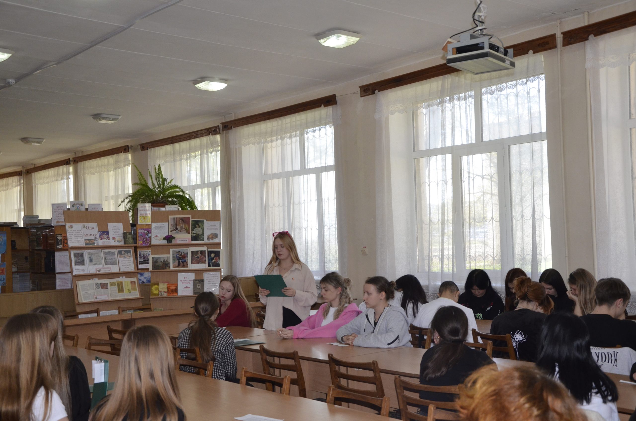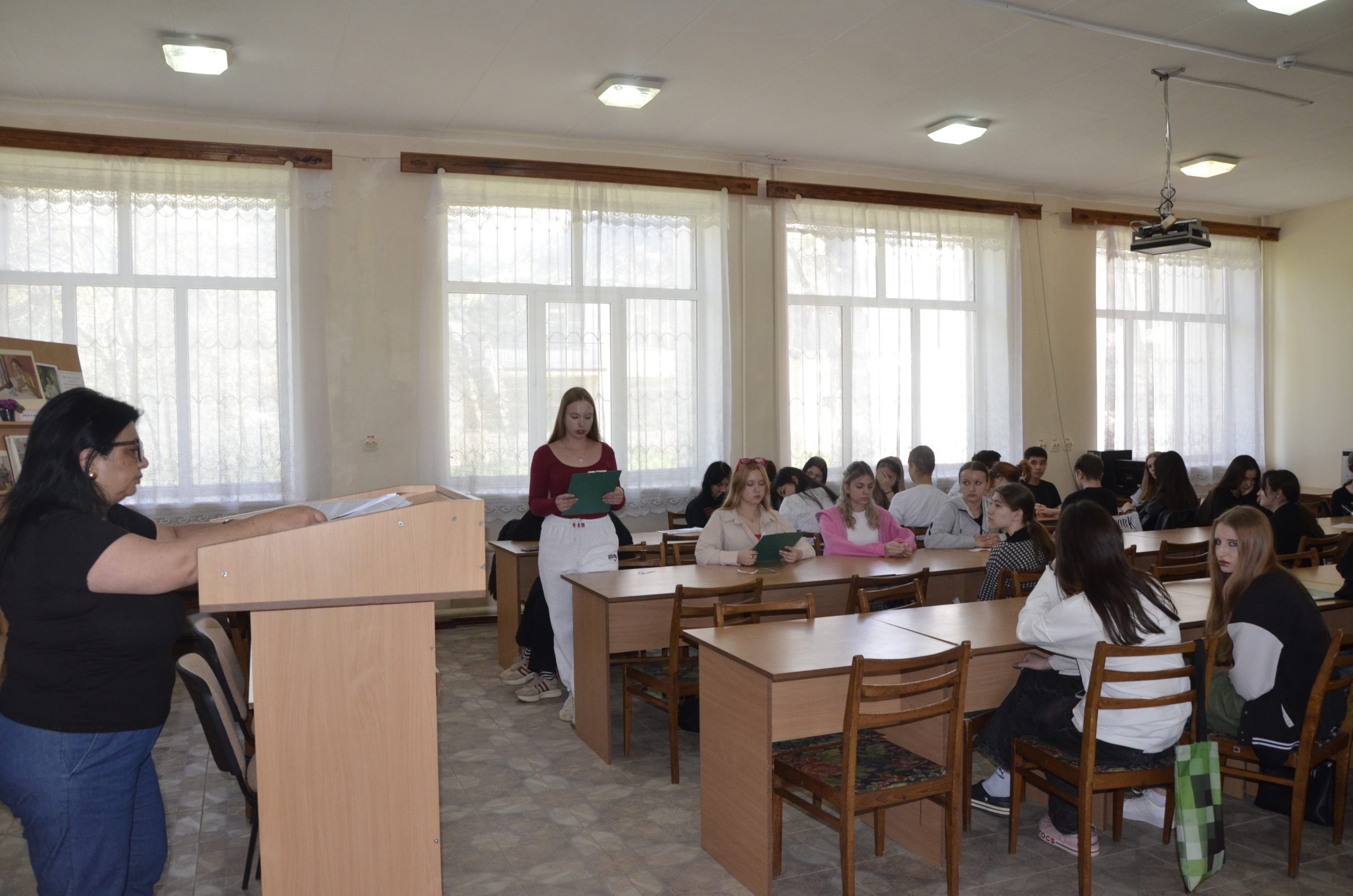 17 апреля 2025 года в библиотеке Прибрежненского аграрного колледжа под руководством кураторов Даревич В.В., Козицкая О.И. и заведующей библиотекой Карапетян А.А. прошел тематический классный час «Ода книге», посвященный Всемирному дню книги и авторского права.
