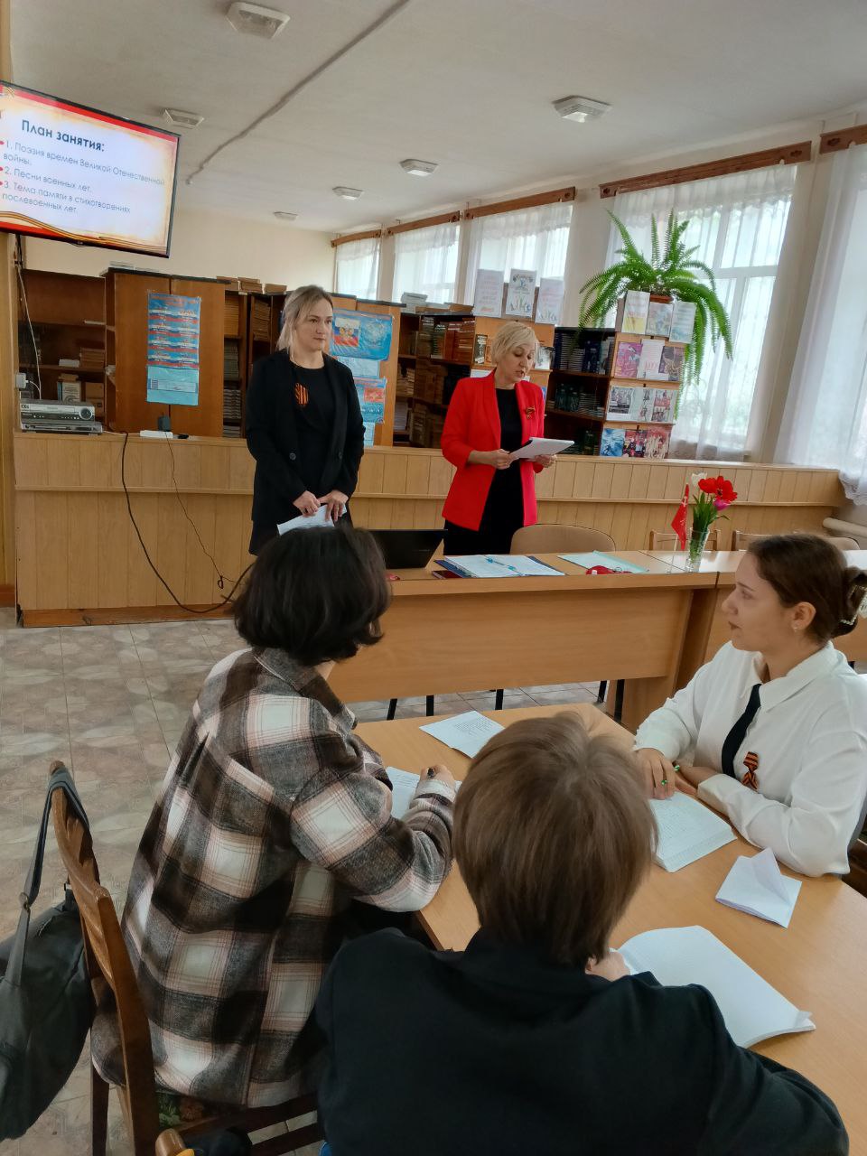 Проза и поэзия сыграли важную роль, в победе нашего народа в Великой Отечественной войне. Стихи, статьи и рассказы помогали нашему народу выжить, поднимали дух, воодушевляли на подвиги. На занятии обучающиеся познакомились с самыми известными произведениями разных жанров о войне, многие из которых были написаны в военное время.