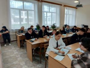 24 апреля 2025 г. в Прибрежненском аграрном колледже преподаватели Перегуд Е.В. и Дьяволова А.А. провели открытое бинарное занятие по предметам ОУП.02.Литература и ОУП.09.История «Поэзия Великой отечественной войны и послевоенных лет» с обучающимися 11.1-В.