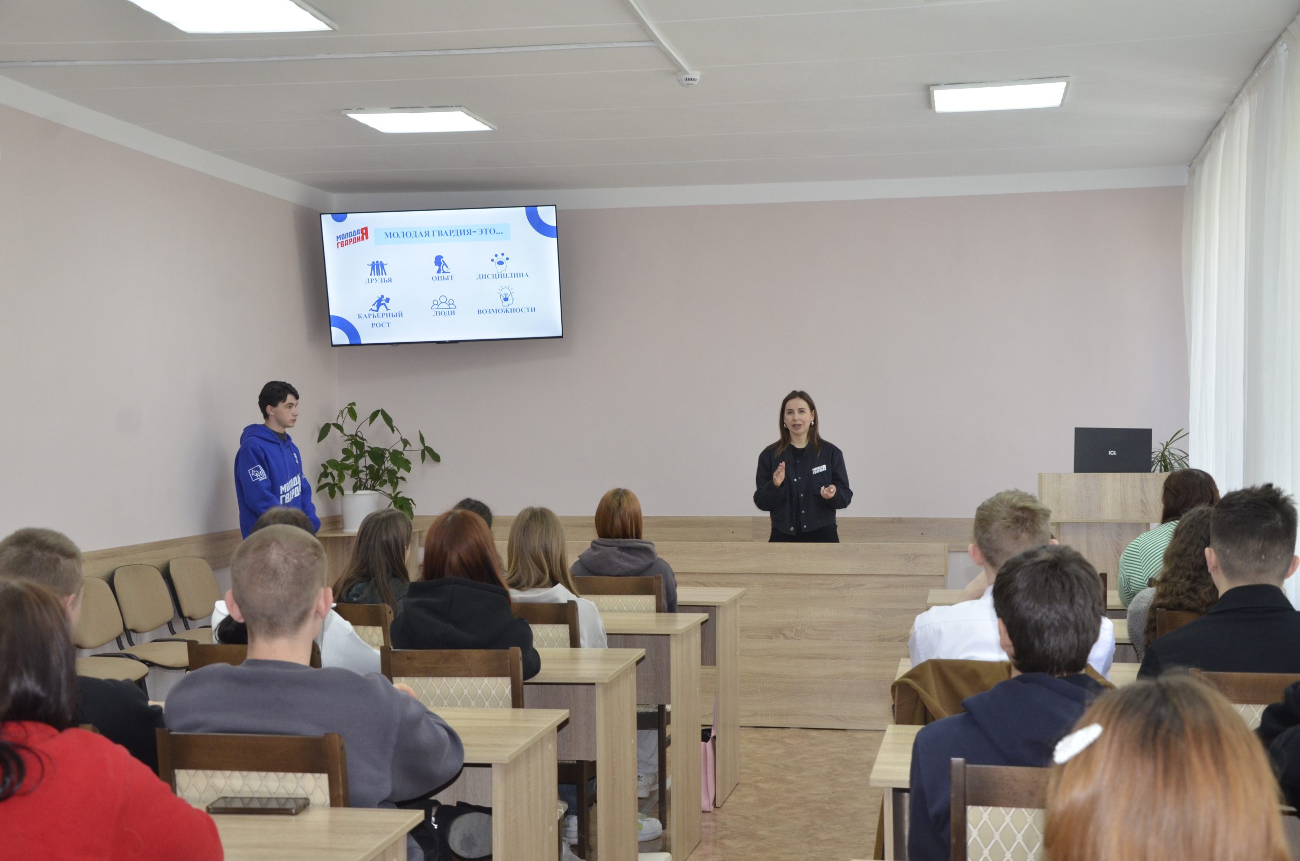 В ходе встречи ребята узнали, что «Молодая Гвардия» – это энергичные и амбициозные молодые люди, которых объединяют дружеские отношения, взаимопомощь и взаимовыручка. Это молодежь, небезразличная к судьбе своей Родины, активно участвующая во внешней и внутренней общественной и политической жизни страны. Работа ведется во всех сферах, которые связаны с молодёжной политикой: пропаганда здорового образа жизни, спорт, экологические акции, круглые столы, культурные мероприятия, волонтёрские акции, работа с ветеранами, студентами и школьниками, патриотическое воспитание и многое другое.
