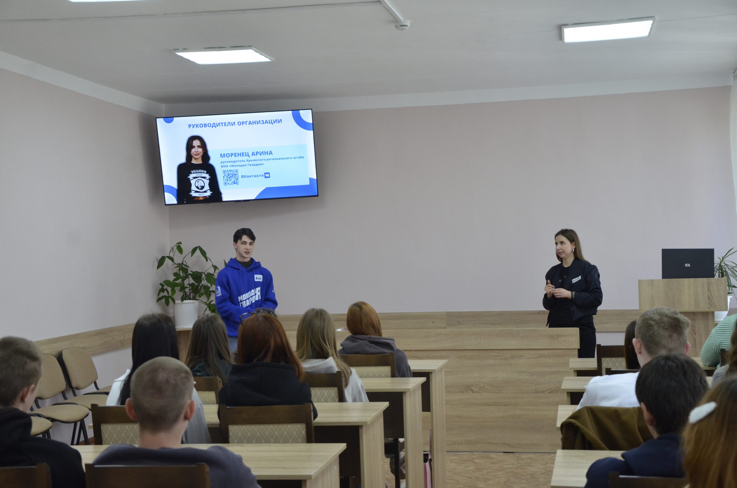 29 апреля 2025 года, обучающиеся Прибрежненского аграрного колледжа встретились с депутатом Государственного Совета Республики Крым, руководителем Крымского регионального отделения «Молодой Гвардии»— Ариной Олеговной Моренец.