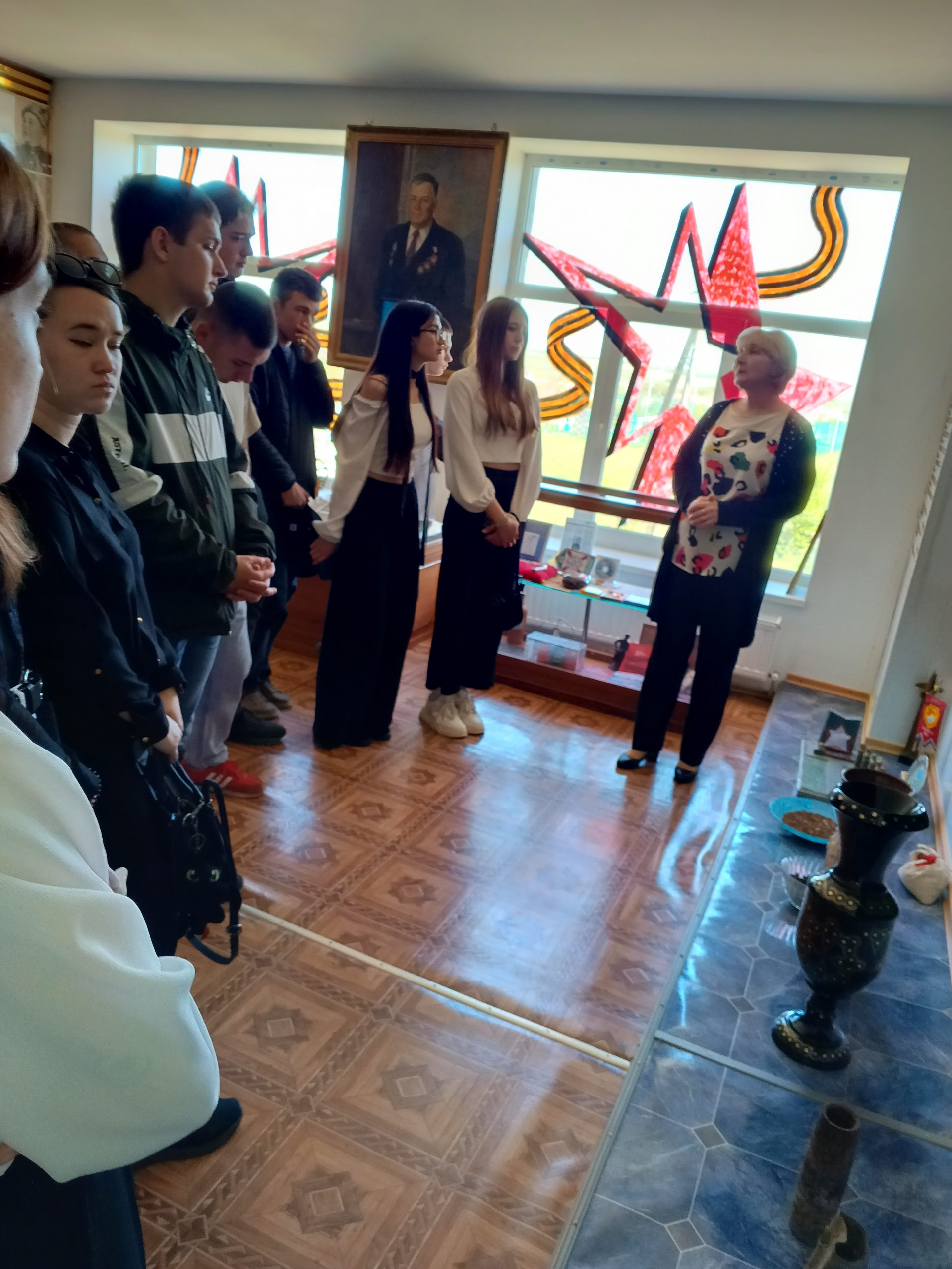 30 апреля 2025 года, обучающиеся Прибрежненского аграрного колледжа во главе с заместителем директора по воспитательной работе А.Э. Киреевой и преподавателем Ю.Ф. Туловой посетили музейную комнату в с. Геройское Сакского района.