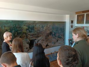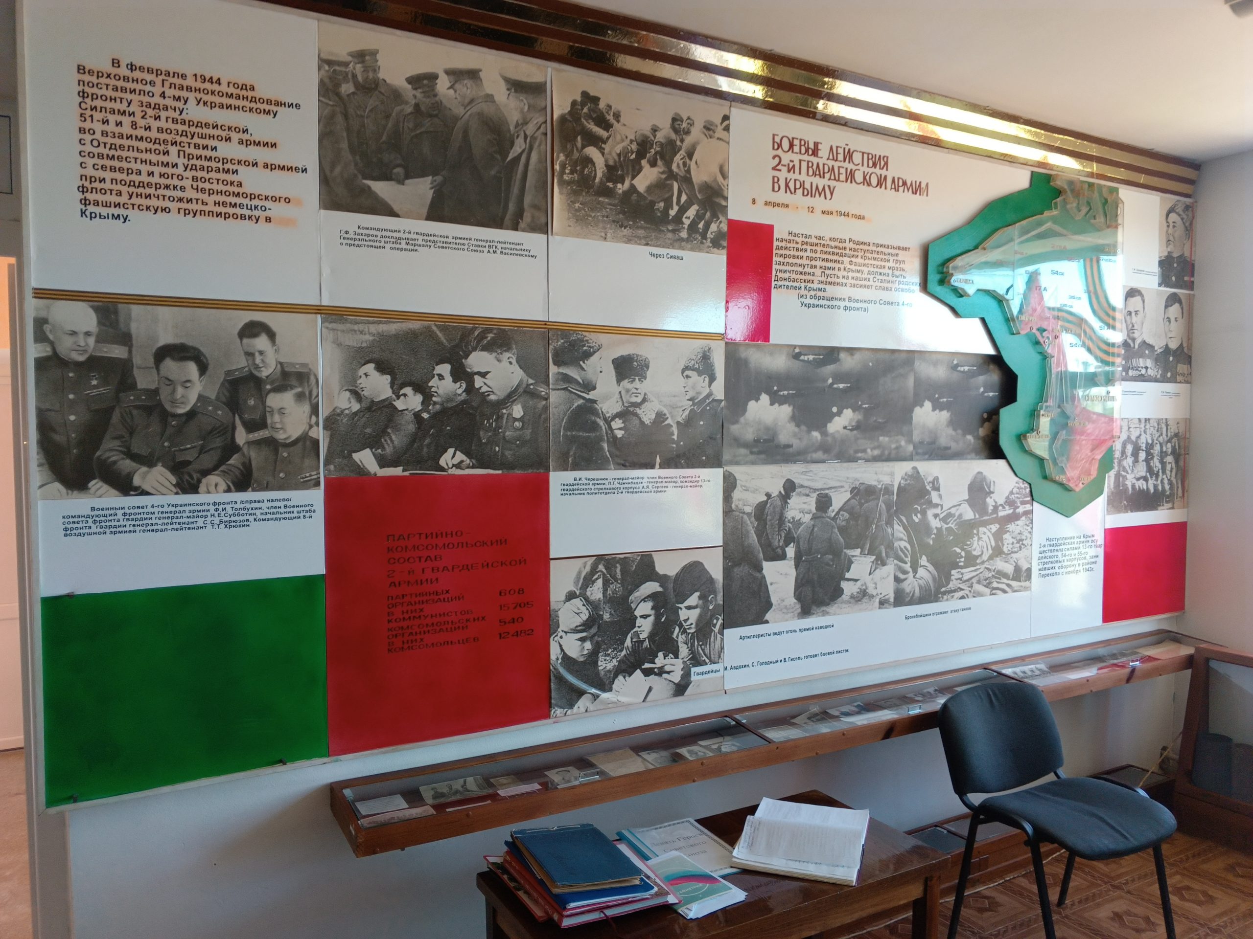 В ходе экскурсии, обучающиеся ознакомили со славной историей села Геройское. Присутствующим представили диораму и экспонаты, посвященные героям, освободившим село Геройское и Сакский район от фашистов в Великой Отечественной войне. Среди них девять героев Советского союза, восемь из которых отдали свои жизни во имя Великой Победы.