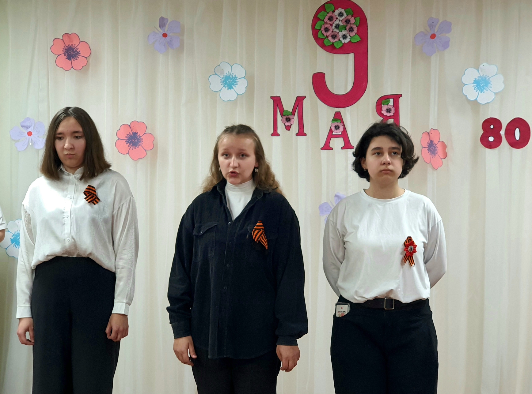 Музыкальные номера стали ярким подарком для всех присутствующих. Богомолова Мирослава исполнила «Военное попури», объединив самые известные и любимые песни военных лет в одно трогательное представление. Гацко Елизавета зарядила зрителей энергией и позитивом, исполнив задорный сольный танец под народную песню «Катюша». Кульминацией музыкальной программы стало исполнение песни Владимира Высоцкого «Он не вернулся из Боя» под гитару Заика Марией и Клюевой Виолеттой. Их проникновенное исполнение заставило задуматься о цене Победы и о тех, кто не вернулся с полей сражений.