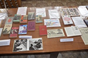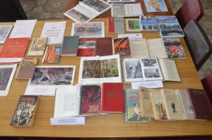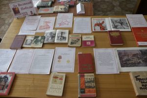 Золотыми буквами вписаны в летопись истории Великой Отечественной войны имена городов-героев: Москвы, Ленинграда, Волгограда, Киева, Минска, Одессы, Севастополя, Новороссийска, Керчи и Брестской крепости. Они составляют нашу гордость и славу, олицетворяют богатырский подвиг советского народа, разгромившего немецко-фашистских захватчиков, отстоявшего честь и независимость Родины. За массовый героизм и мужество эти города удостоены почетного звания «Город-герой». О городах-героях и их защитниках издано много книг. Из фонда библиотеки на нашей выставке представлены: А. Еременко «Сталинград», М. Сирота «Так сражалась Керчь», С. Щербак «Боевая слава Керчи», «Керчь героическая», К. Буков «Победа над Москвой», К. Москаленко «Битва на Курской дуге» и др.