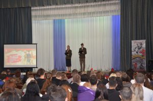 Театрализованная постановка «10-А» погрузила зрителей в атмосферу военных лет. Обучающиеся с большим энтузиазмом и уважением к истории нашей страны исполняли произведения, которые трогали сердца зрителей, читали стихи о мужестве и героизме, доблести и отваге. Звучали песни военных лет, композиции о Родине и Победе.