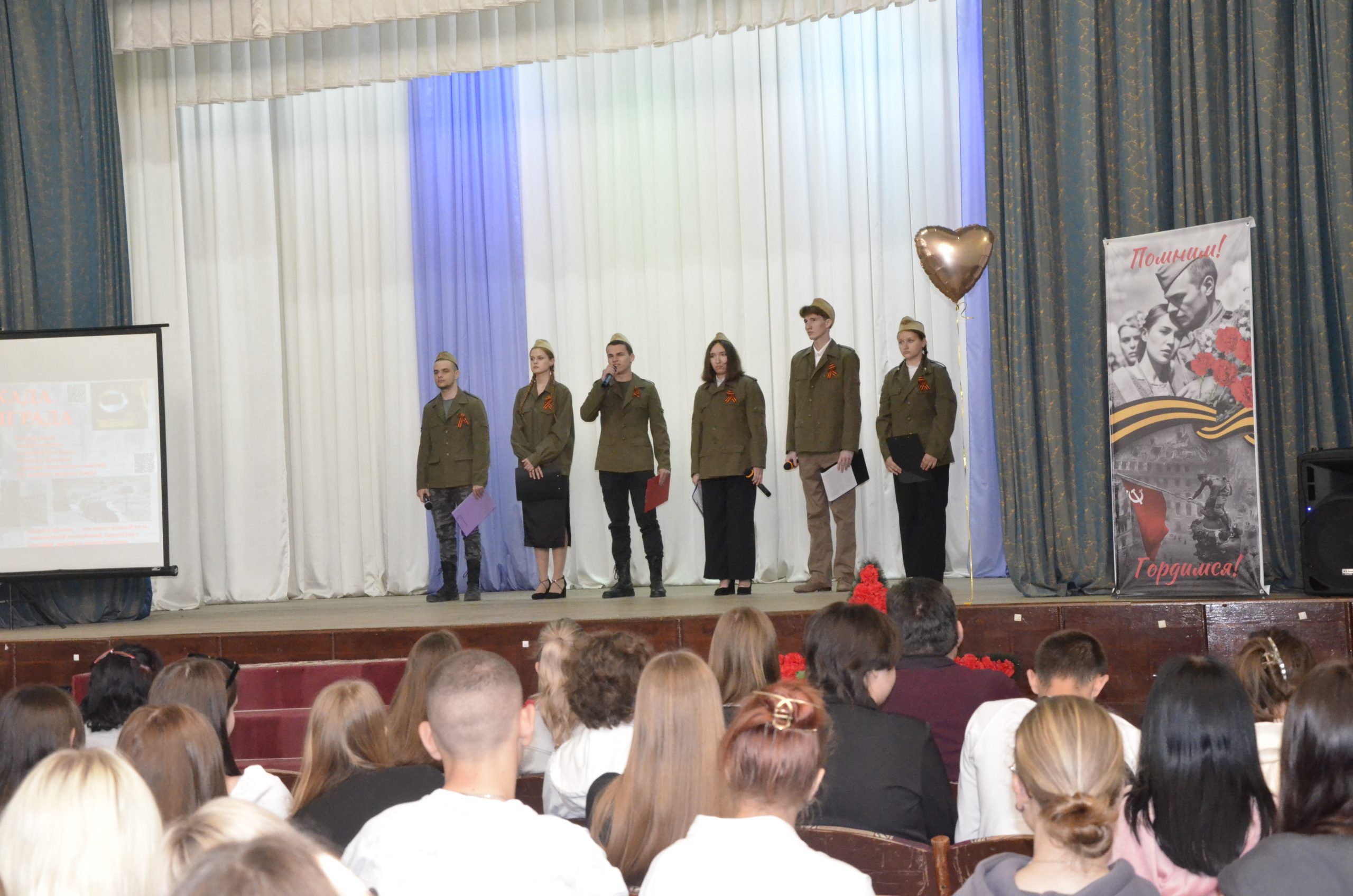 «80 лет назад была перевернута последняя страница самой кровопролитной войны в истории человечества. Всё дальше от нас 9 Мая 1945 года. Но сколько бы времени ни прошло, мы всегда будем помнить беспримерный подвиг советских солдат, кровью отстоявших свободу и независимость нашей Родины. Для миллионов граждан России, чьи отцы и деды воевали на фронтах Великой Отечественной войны, это самый святой праздник. День радости и гордости за нашу страну, за великий народ, победивший фашизм. С глубоким почтением и скорбью мы склоняем головы перед павшими на полях сражений этой самой кровопролитной из войн», — такими словами открыла мероприятие директор колледжа Хаирова Арзы Наримановна.
