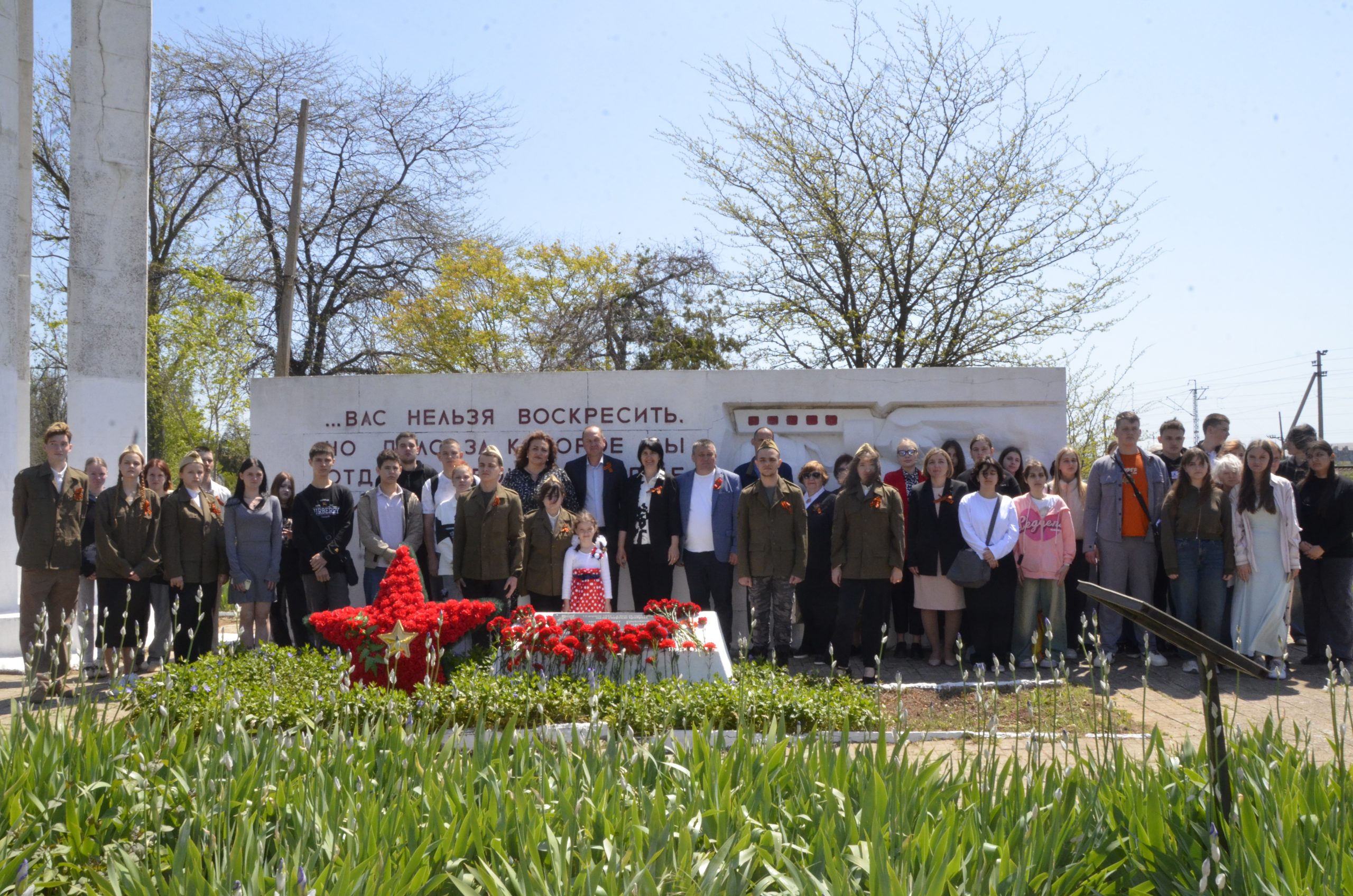 В завершении участники переместились в парк им. 60-летия Великого Октября где у братской могилы воинов погибших 13 апреля 1944 года при освобождении с. Прибрежное свои молодые жизни отдали в бою младший сержант украинец Илья Бондаренко и рядовой казанский татарин Бекмуратов произвели возложение цветов к памятнику.
