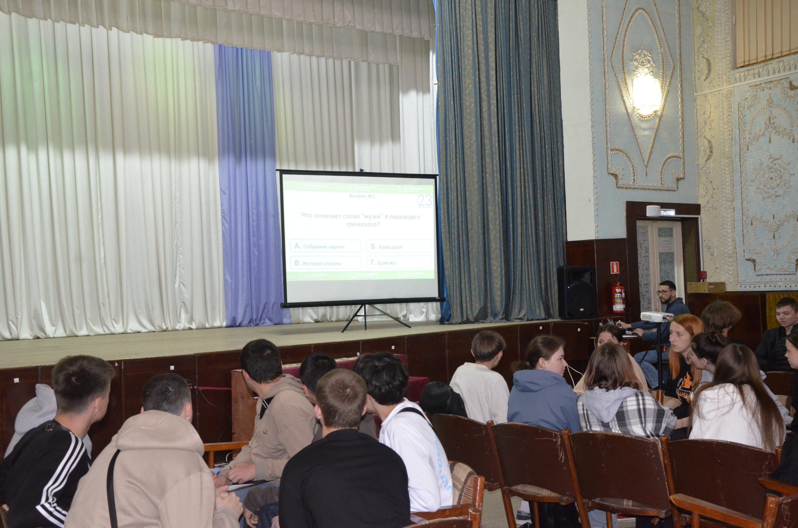 15 мая 2025 года, в преддверии Дня музеев, в актовом зале Прибрежненского аграрного колледжа специалистами «Дома Молодежи» г. Евпатория был проведен интеллектуальный квиз «Музейные истории».