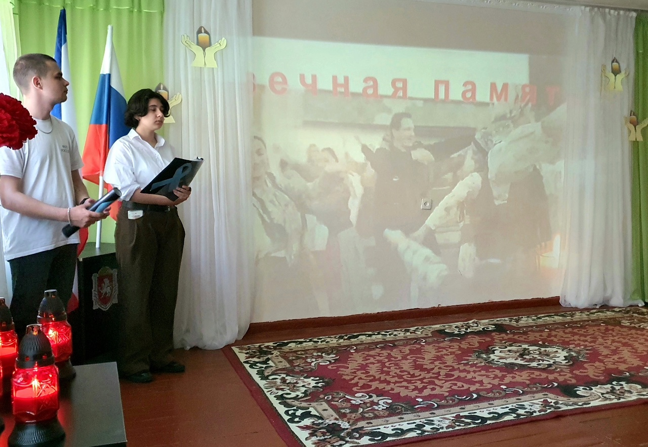 Ведущими вечера были обучающиеся Клыпа Амина и Гуляев Алексей, которые с трепетом и уважением провели мероприятие, создав атмосферу скорби и сопереживания.