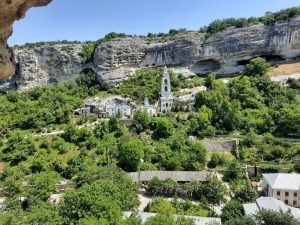 После все поднялись в Свято-Успенский мужской монастырь — его еще называют Крымским Афоном или Крымской Лаврой. Историю монастыря слушателям поведал насельник монастыря иеромонах Авраам (Гулевич).