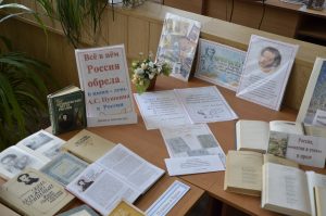 С этой целью в библиотеке Прибрежненского аграрного колледжа организована книжно-иллюстративная выставка «Все в нем Россия обрела». Представленные на ней издания помогут читателям глубже осмыслить изменения, происходящие в языке, и значительно повысить уровень своей речевой культуры. Выставка включает в себя избранные произведения А.С. Пушкина от повестей до поэм разных лет, романа в стихах и исторической прозы. А.С. Пушкин оставил по-настоящему уникальное наследство, вдохновив на творчество десятки выдающихся писателей и поэтов.