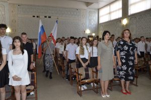Открылась торжественная линейка вносом флагов и гимнами Российской Федерации и Республики Крым.