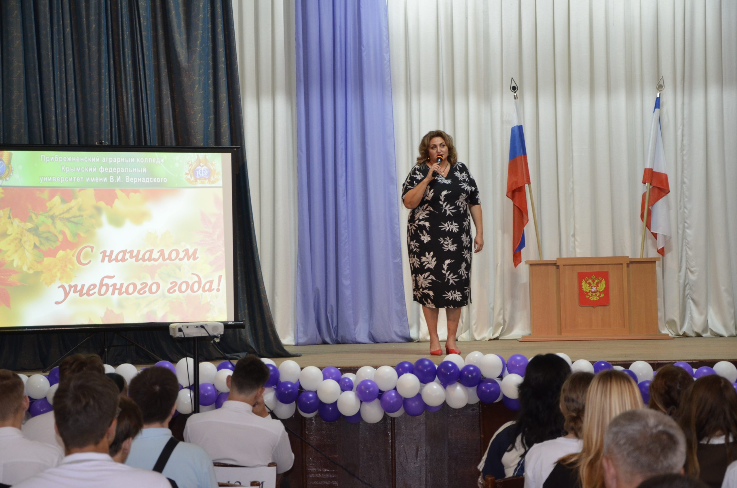 01 сентября 2025 года в актовом зале Прибрежненского аграрного колледжа ФГАОУ ВО «КФУ им. В.И. Вернадского» состоялась торжественная линейка, на которой приветствовали более чем 160 первокурсников специальностей: 36.02.01 Ветеринария, 36.02.03. Зоотехния, 35.02.05. Агрономия, 35.02.16. Эксплуатация и ремонт с.х. техники и оборудования, 35.02.08. Электротехнические системы в агропромышленном комплексе и 09.02.06 Сетевое и системное администрирование.
