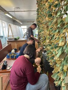 Процесс плетения сетей непростой и требует терпения, но ребята делают это с особым энтузиазмом, ведь это их помощь для приближения нашей общей Победы!