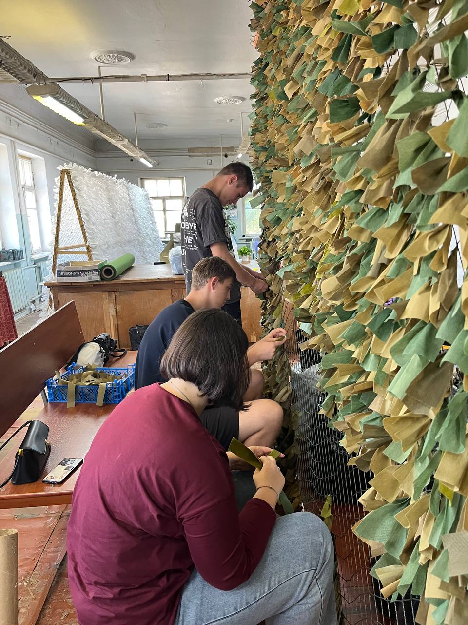 Так, 24 сентября 2025 года, под руководством воспитателя общежития №3 О.И. Скляр, ребята в очередной раз посетили волонтерский центр «Мы вместе» города Саки, где приняли участие в изготовлении новых маскировочных сетей.