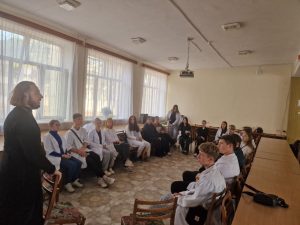Встречи церковнослужителя с обучающимися проводятся в формате бесед, где ирей имеет возможность ответить на интересующие ребят вопросы.