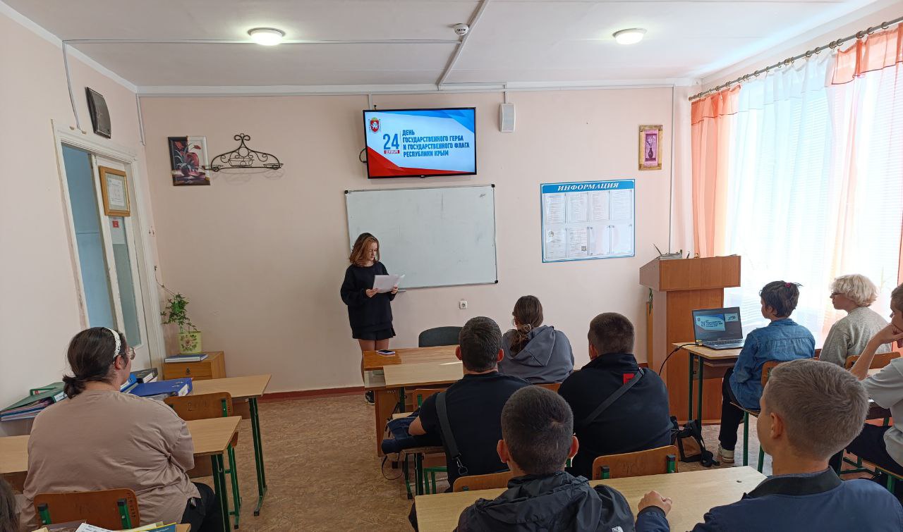 В ходе классных часов кураторы ознакомили обучающихся с основными положениями Конституции Российской Федерации, а также Конституции Республики Крым определяющих герб, флаг и гимн как государственные символы.