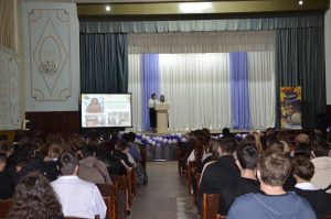 В ходе линейки, обучающиеся 40-В группы ознакомили присутствующих с историей возникновения праздника и рассказали о роли учителя в жизни каждого человека. В продолжении, ребята представили всеобщему вниманию увлекательную информацию о преподавателях колледжа, а именно: где обучались, почему выбрали именно эту специальность, как относятся к современной обучающейся молодежи и несколько пожеланий нашим студентам.