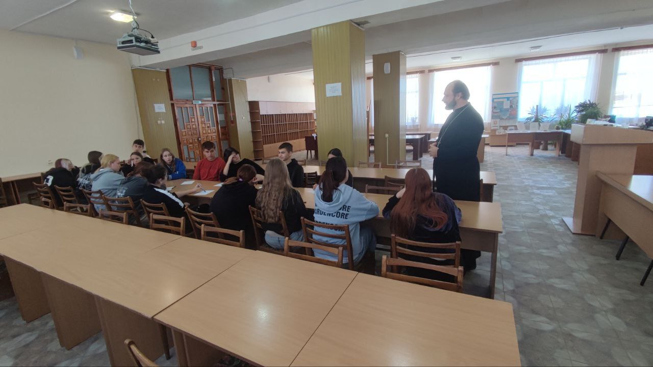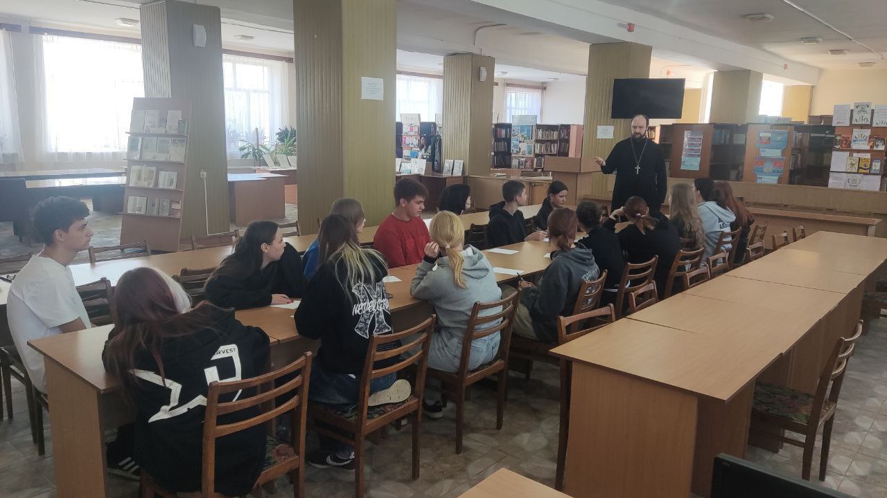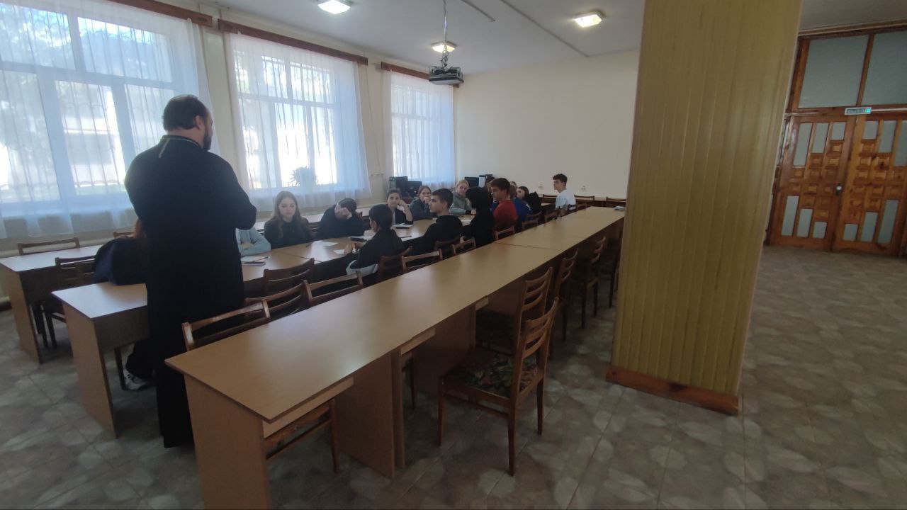 02 октября 2025 года, в читальном зале Прибрежненского аграрного колледжа продолжается цикл духовно-просветительских встреч с церковнослужителями.