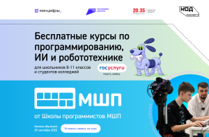 Школа программистов МШП, являясь провайдером проекта с 2022 года, реализуемого Министерством цифрового развития Российской Федерации, завершает набор студентов СПО IT-специальностей, а также обучающихся 8–11 классов, на бесплатные образовательные программы в 2025/2026 учебном году.