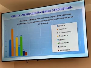 Модератором круглого стола выступила директор Прибрежненского аграрного колледжа КФУ им. В.И. Вернадского Хаирова А.Н., были заслушаны доклады: директора Координационного центра КФУ им. В.И. Вернадского, доцент кафедры уголовного права и процесса юридического факультета Губановой Е.В. на тему «Проблемы межнациональных взаимоотношений в студенческой среде», Кузьмича И.А. – обучающегося 43-З группы, специальность Зоотехния, Прибрежненского аграрного колледжа на тему «Межнациональных взаимоотношения в студенческой среде ПАК», руководителя отдела взаимодействия с образовательными учреждениями Сакского церковного округа – иерей Максима Пустового, Лапко В.Г, обучающейся 3 курс, специальность «Дизайн», Таврического колледжа на тему «Культовые сооружения многонационального Крыма», главного специалиста по организации работы в Сакском районе Регионального отделения «Движение первых» РКрым — Баглай А.В., Карамиля-Михновской С.И. – обучающейся 40-В группы, специальность Ветеринария, Прибрежненского аграрного колледжа на тему «К единству через добро», начальник отдела по работе с молодежью в западных регионах Республики Крым, Западный зональный центр «Дома Молодежи» Морозовой А.Р., Ткачук М.О. обучающейся 1 курса отделения Стоматология ортопедическая Медицинского колледжа Ордена Трудового Красного Знамени Медицинского института им. С.И.Георгиевского на тему «Симфония народов».