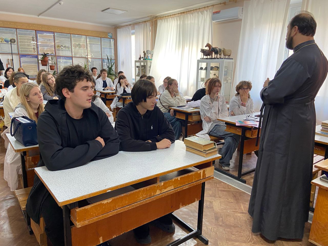 30 октября 2025 года, в учебной аудитории Прибрежненского аграрного колледжа продолжается цикл духовно-просветительских встреч с церковнослужителями.