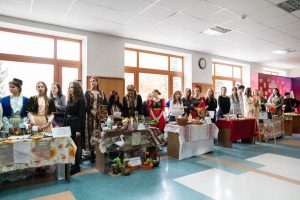 Сборной нашего колледжа, согласно предварительной жеребьевки, досталась честь представить крымских армян. Ребята подготовили и презентовали традиционные блюда армян: толма, лаваш, матнакаш, сыр чанах, соления, изобилие свежей зелени, фруктов, напитки – тан, гранатовый сок, и конечно же сладости – пахлава и гата.