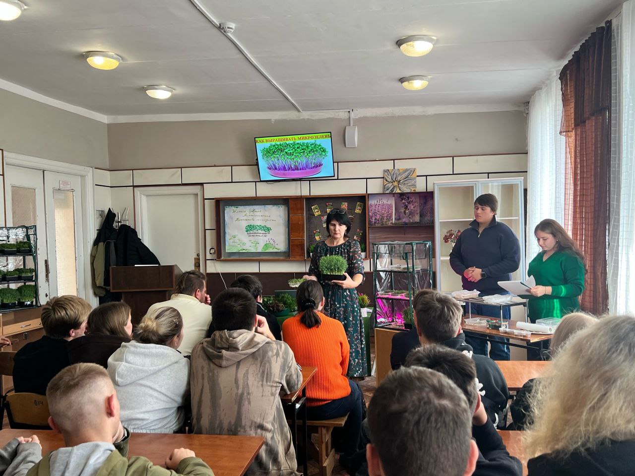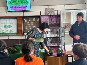 «Маленький росток, большая сила…» — такими словами Наталья Александровна начала мероприятие, которое сопровождалось яркой презентацией. Участники узнали интересные факты о зеленом будущем сельского хозяйства, открывающем новые горизонты в питании и экологии. Педагог также рассказала о последнем тренде тепличного растениеводства — о выращивании микрогрина.