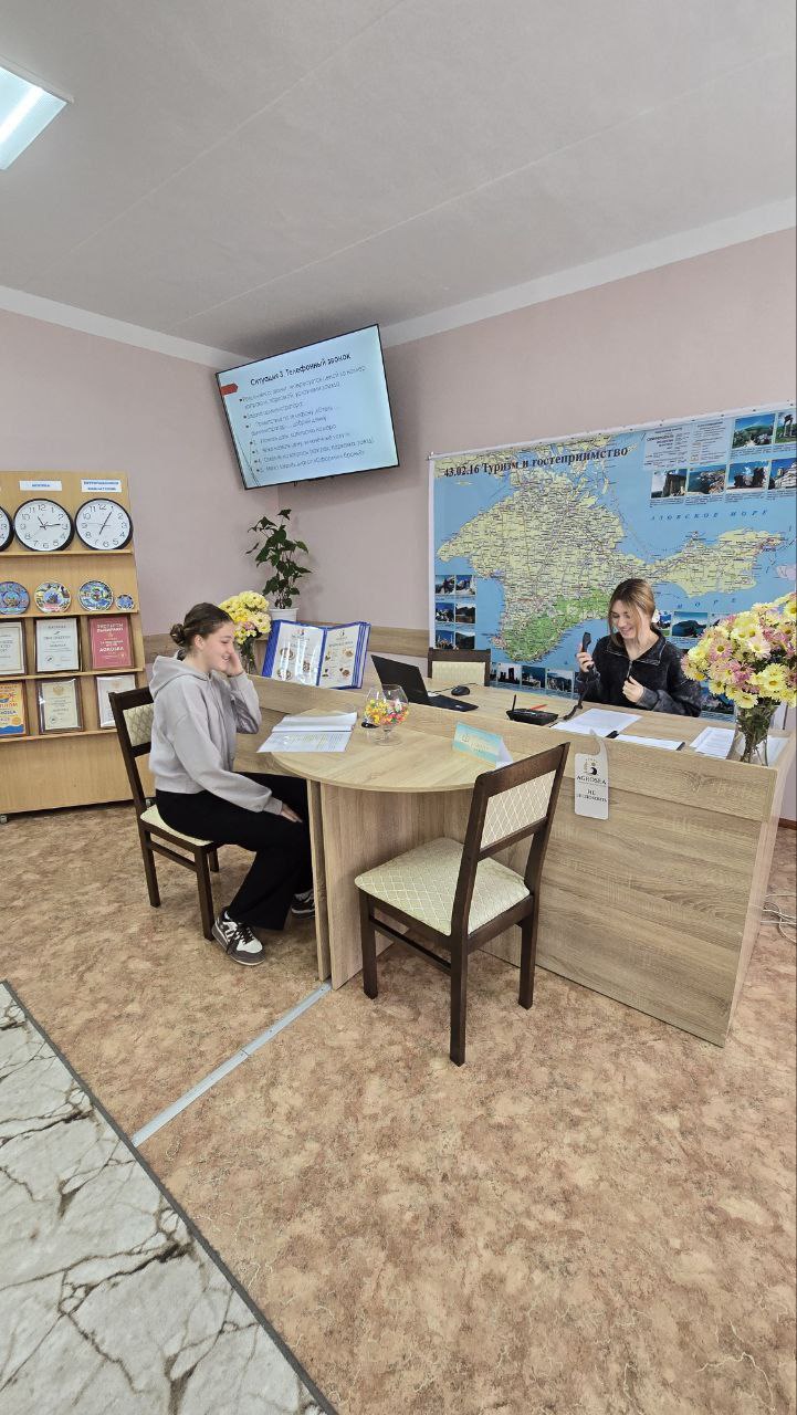 11 и 17 ноября 2025 года, обучающиеся 9-11 классов МБОУ «Лесновская средняя школа» Сакского района Республики Крым посетили Прибрежненский аграрный колледж (филиал) ФГАОУ ВО «Крымский федеральный университет имени В.И. Вернадского» с целью участия в профессиональных пробах по специальности 43.02.16 Туризм и гостеприимство в рамках федеральной профориентационной программы «Билет в будущее».