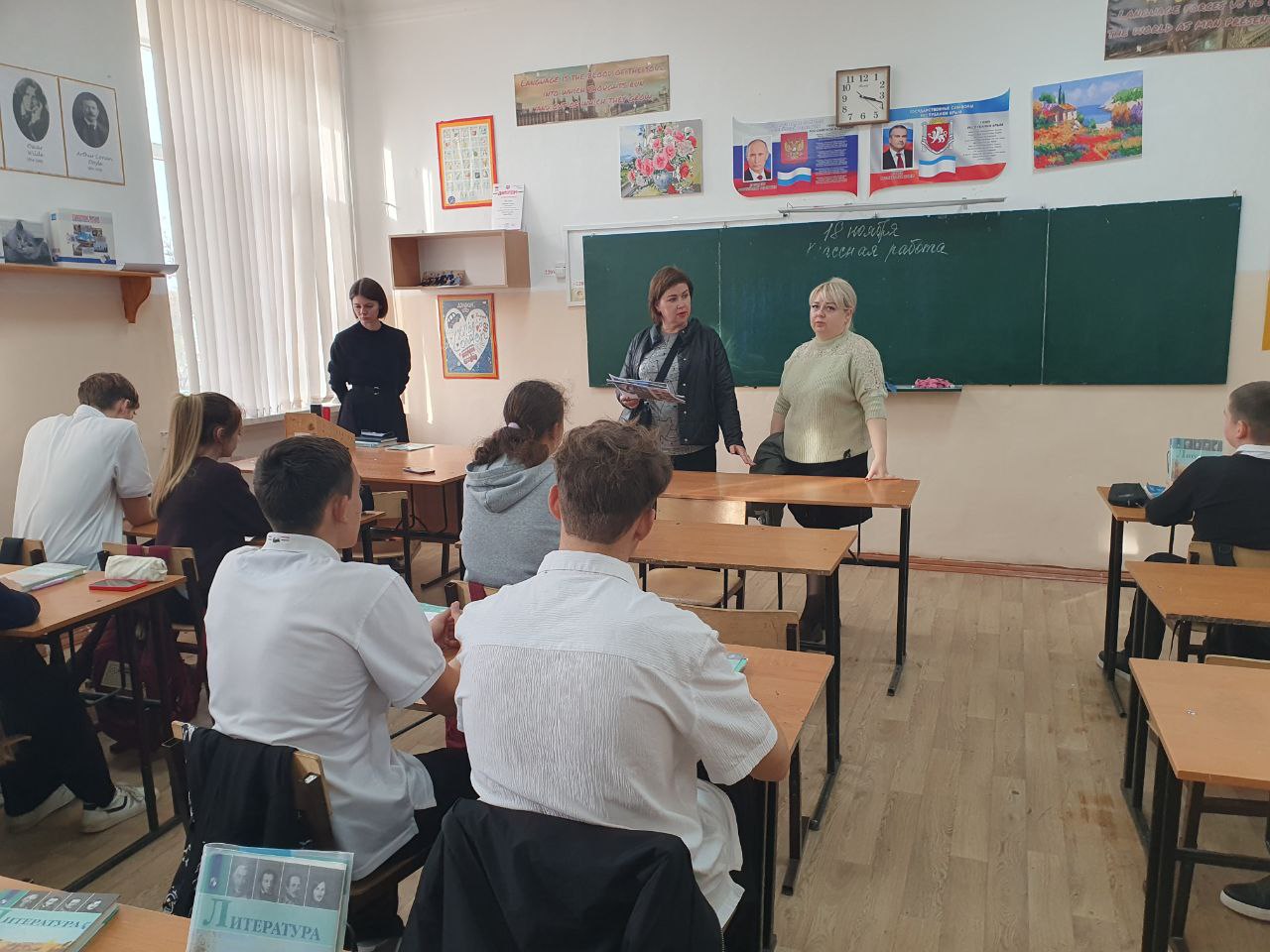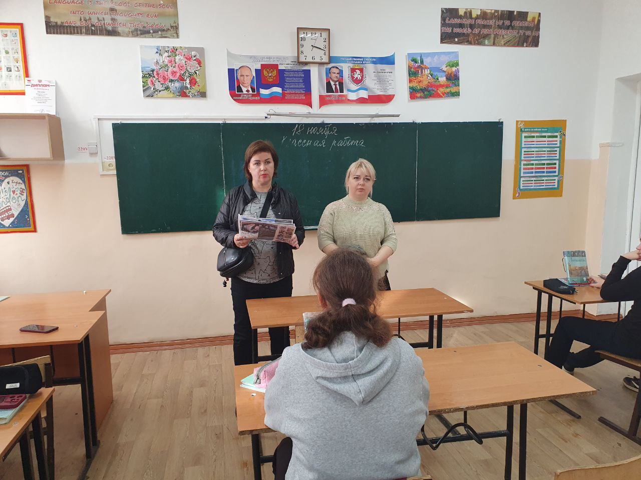 Прибрежненский аграрный колледж продолжает проводить профориентационную работу со школьниками, в этой связи 18 ноября 2025 года с профориентационной деятельностью для учащихся 9 — х классов школ г. Саки были направлены преподаватели гуманитарного цикла: Васина Татьяна Викторовна и Гуменюк Наталья Николаевна.