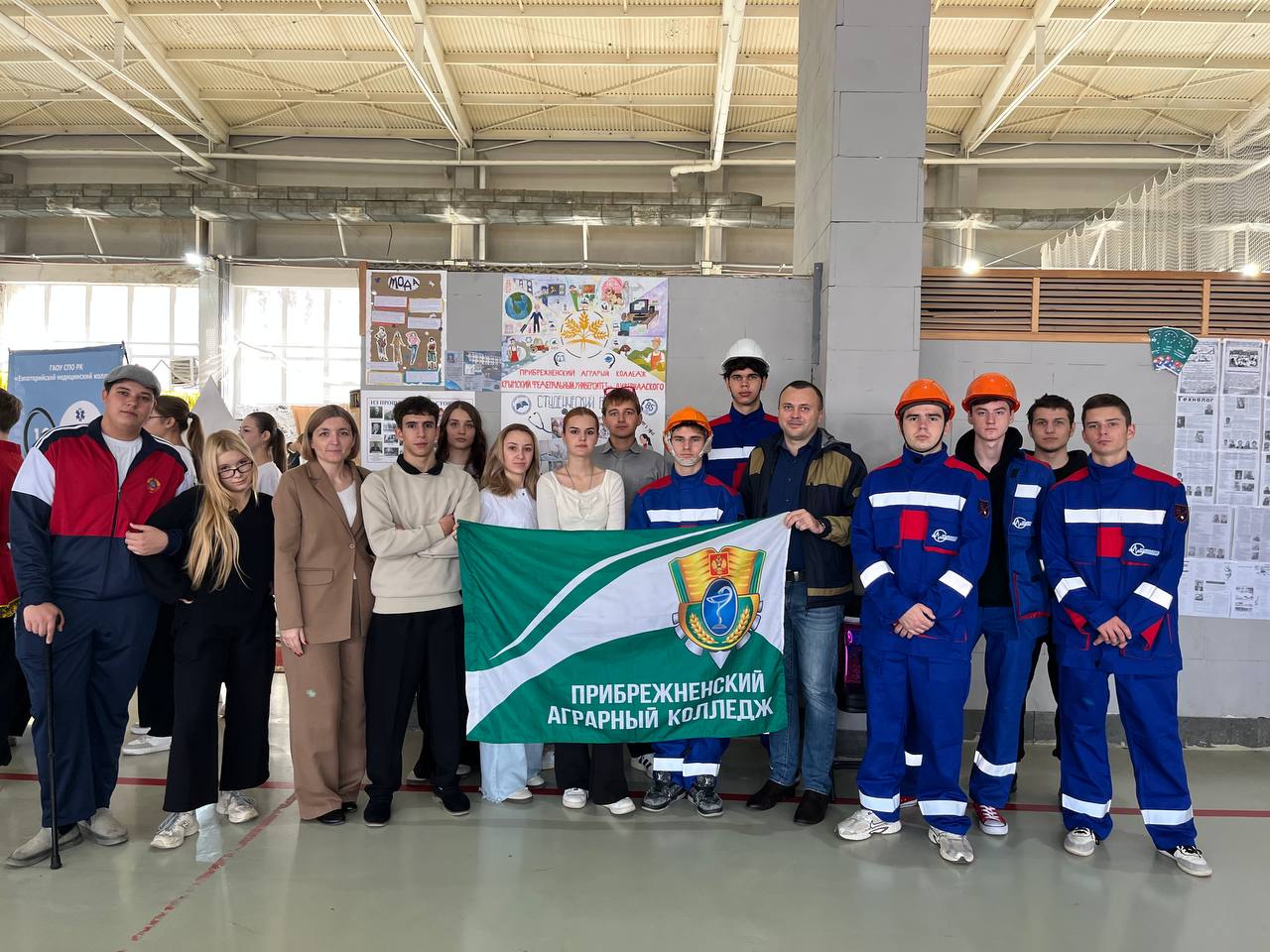 Обучающиеся Прибрежненского аграрного колледжа, под руководством заместителя директора по воспитательной работе А.Э. Киреевой, подготовили и представил плакат, театрализованную постановку «Профессионалитет» по специальности Электротехнические системы в АПК и информационный баннер о специальностях колледжа.