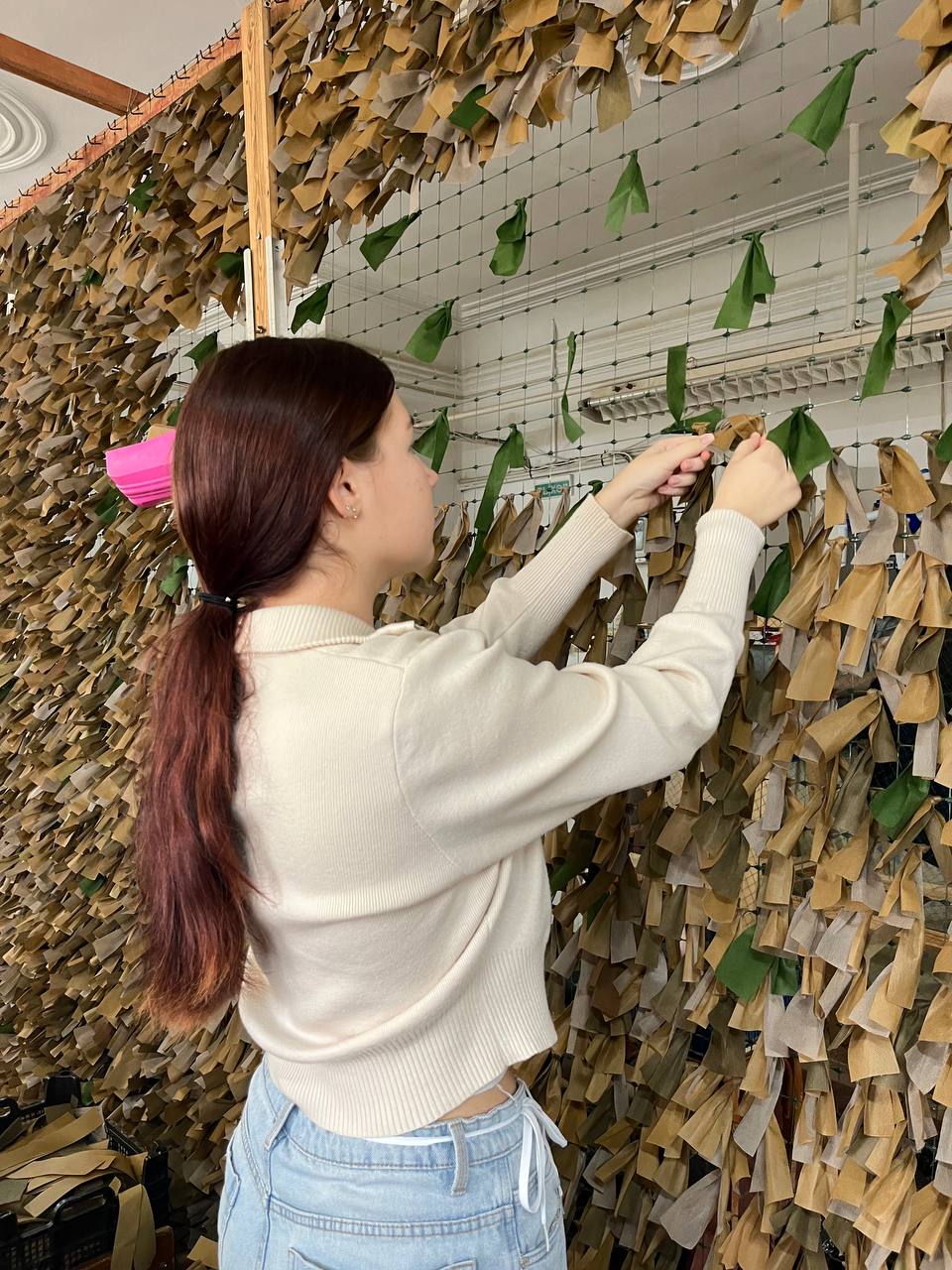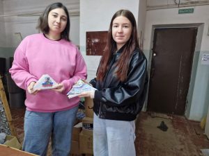 22 ноября 2025 года, обучающиеся 40-В группы Прибрежненского аграрного колледжа проживающие в общежитии №3 — Лиза Филонова и Надя Солодова, под руководством воспитателя О.И. Скляр посетили волонтерский центр «Мы вместе» города Саки, передали написанные ранее письма участникам специальной военной операции для дальнейшего направления на фронт и приняли участие в изготовлении новой маскировочных сетей.