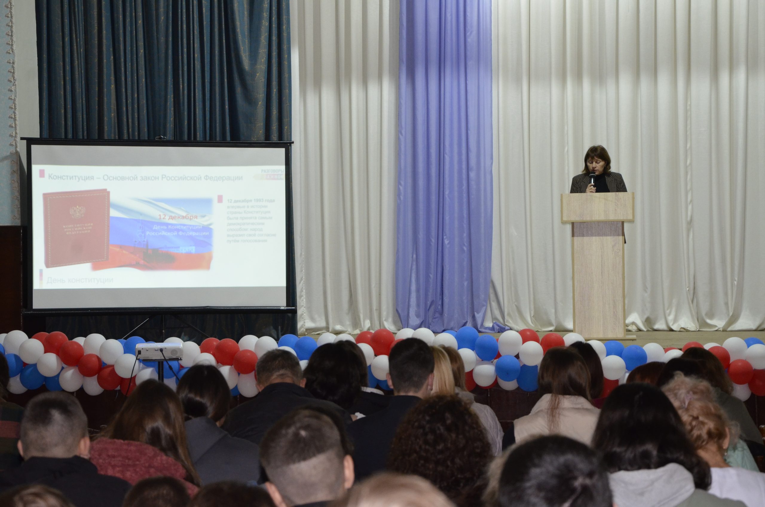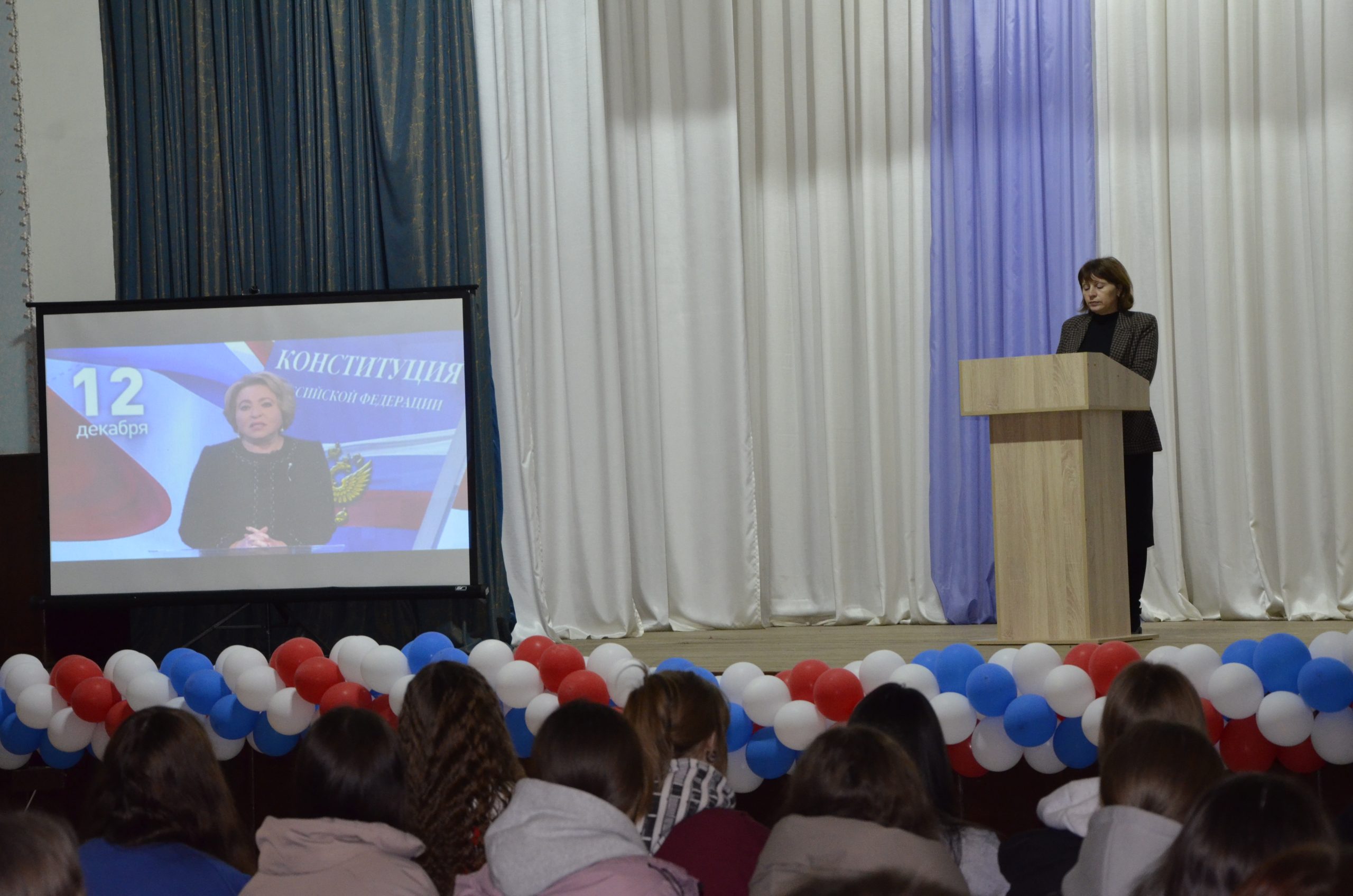 09 декабря 2025 года, в актовом зале Прибрежненского аграрного колледжа, под руководством преподавателя Т.А. Семчик, состоялась тематическая линейка отделений из цикла «Разговоры о важном» на тему: «День Конституции Российской Федерации».