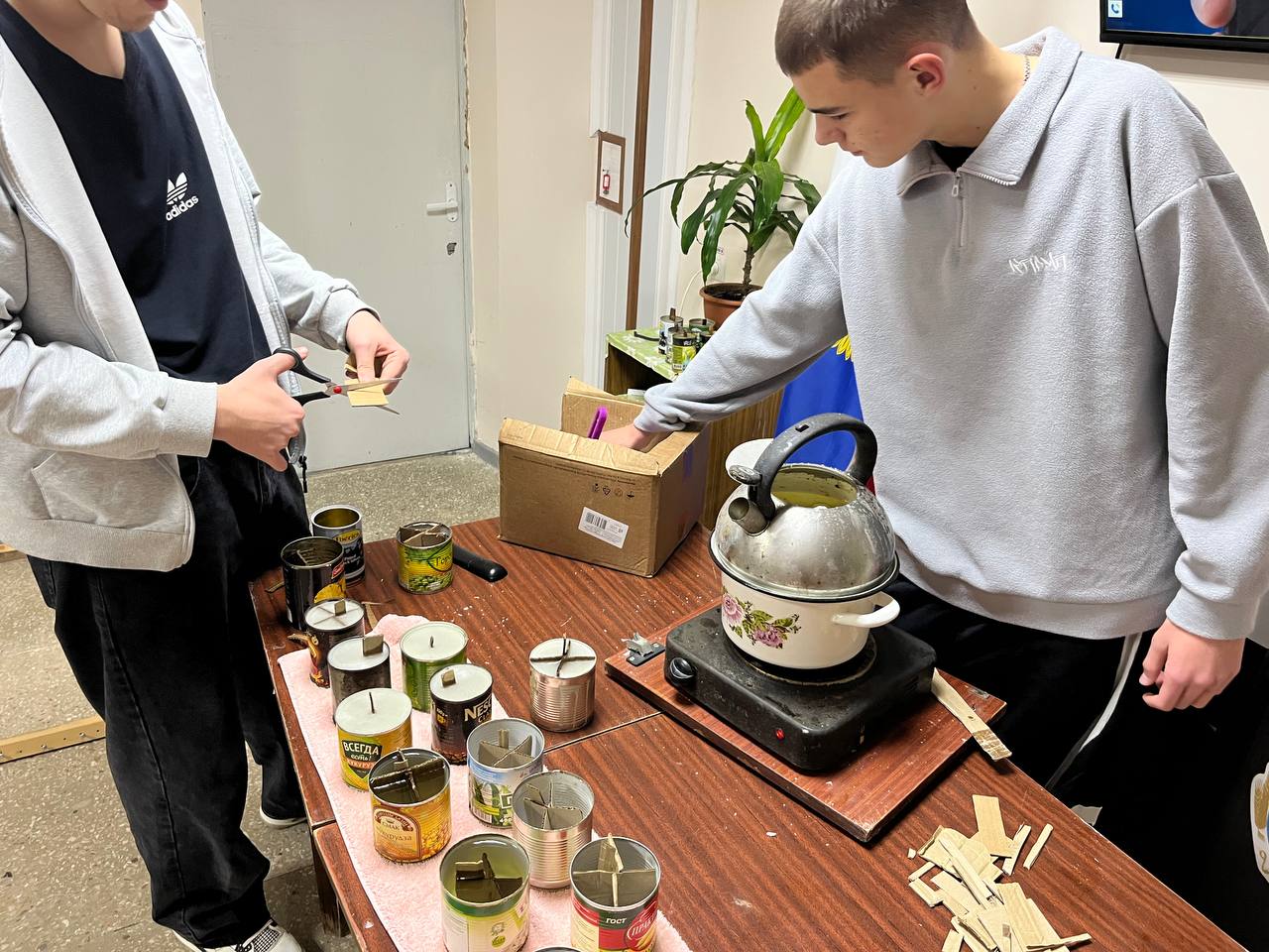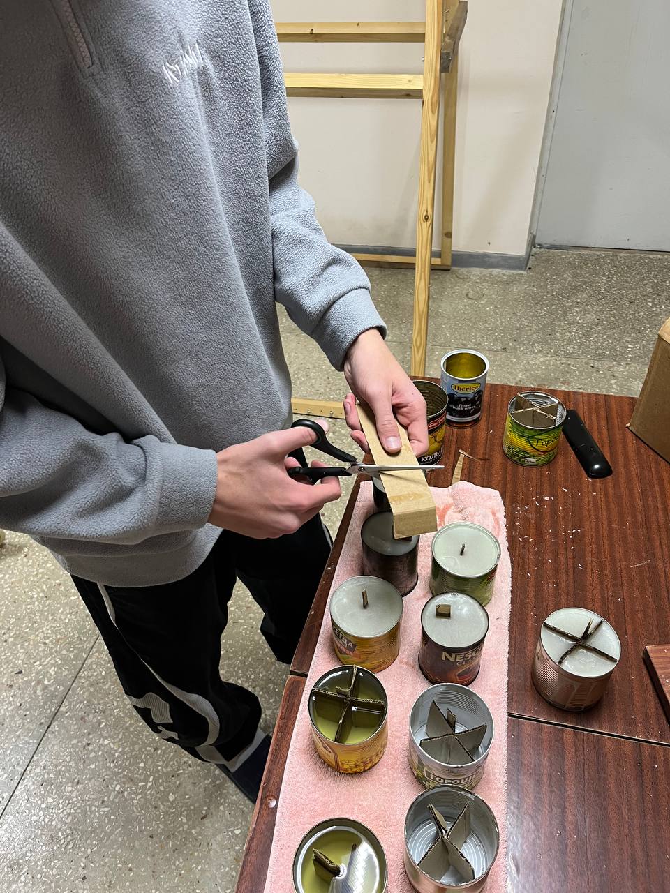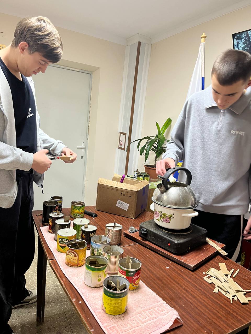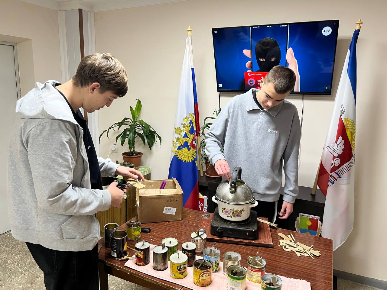 Так, 10 декабря 2025 года, под руководством воспитателя О.И. Скляр ребята мастерили блиндажные свечи для военных, находящихся в зоне СВО. Такая свеча горит от 4 до 8 часов, в отличие от газового баллона, которого хватает на 15-30 минут. Свечами можно обогреть палатку, согреть руки, высушить вещи и вскипятить воду в полевых условиях. Блиндажные свечи изготавливают из подручных материалов: жестяных банок и гофрокартона. Единственное, что нужно приобрести – это парафин.