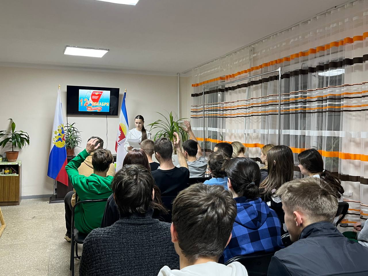 18 декабря 2025 года в общежитии №3 Прибрежненского аграрного колледжа, под руководством воспитателя О.И. Скляр, для жильцов общежития, была проведена интеллектуальная викторина «День Конституции», которая ознакомила ребят с основами Конституции Российской Федерации.
