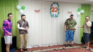 Ведущие вечера, Широкая Маргарита и Дрожжина Маргарита, с энтузиазмом и харизмой провели для присутствующих развлекательную программу. Увлекательные конкурсы, требующие ловкости, смекалки и командного духа, сменились познавательной викториной, проверившей знания и интеллект юнушей. Атмосфера была наполнена смехом, азартом и дружеским соперничеством.