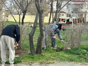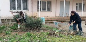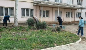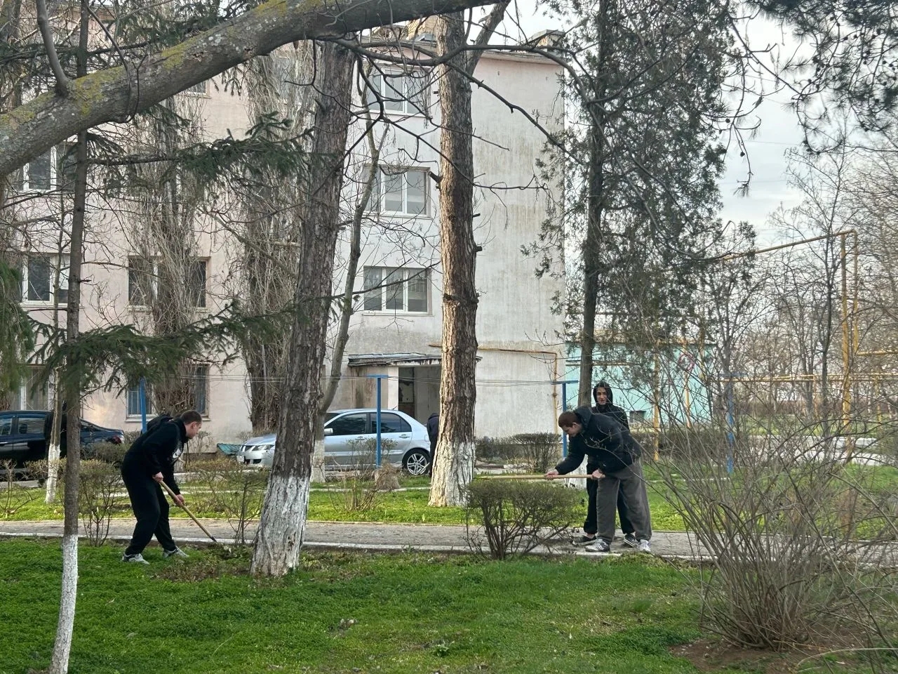Вооружившись необходимым инвентарем, ребята дружно взялись за уборку. Усугубившаяся за зиму трава, забытый всеми сухостой – все это подлежало устранению. Работа кипела: обучающиеся кропотливо цапали землю, освобождая ее от прошлогодней листвы и сорняков, а затем тщательно заметали каждый уголок, оставляя после себя чистоту и порядок.