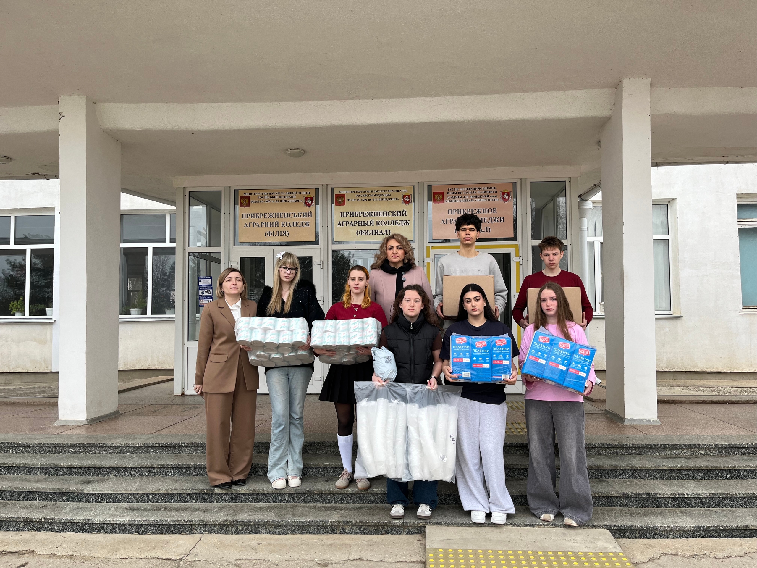 Обучающиеся Прибрежненсого агарного колледжа, участники волонтерского центра «Доброе сердце» подготовили и передали гуманитарный груз волонтерам госпиталей АДЭВА vk.com/dobrohospital, для раненых участников СВО, которые находятся на лечении в военных госпиталях Крыма.