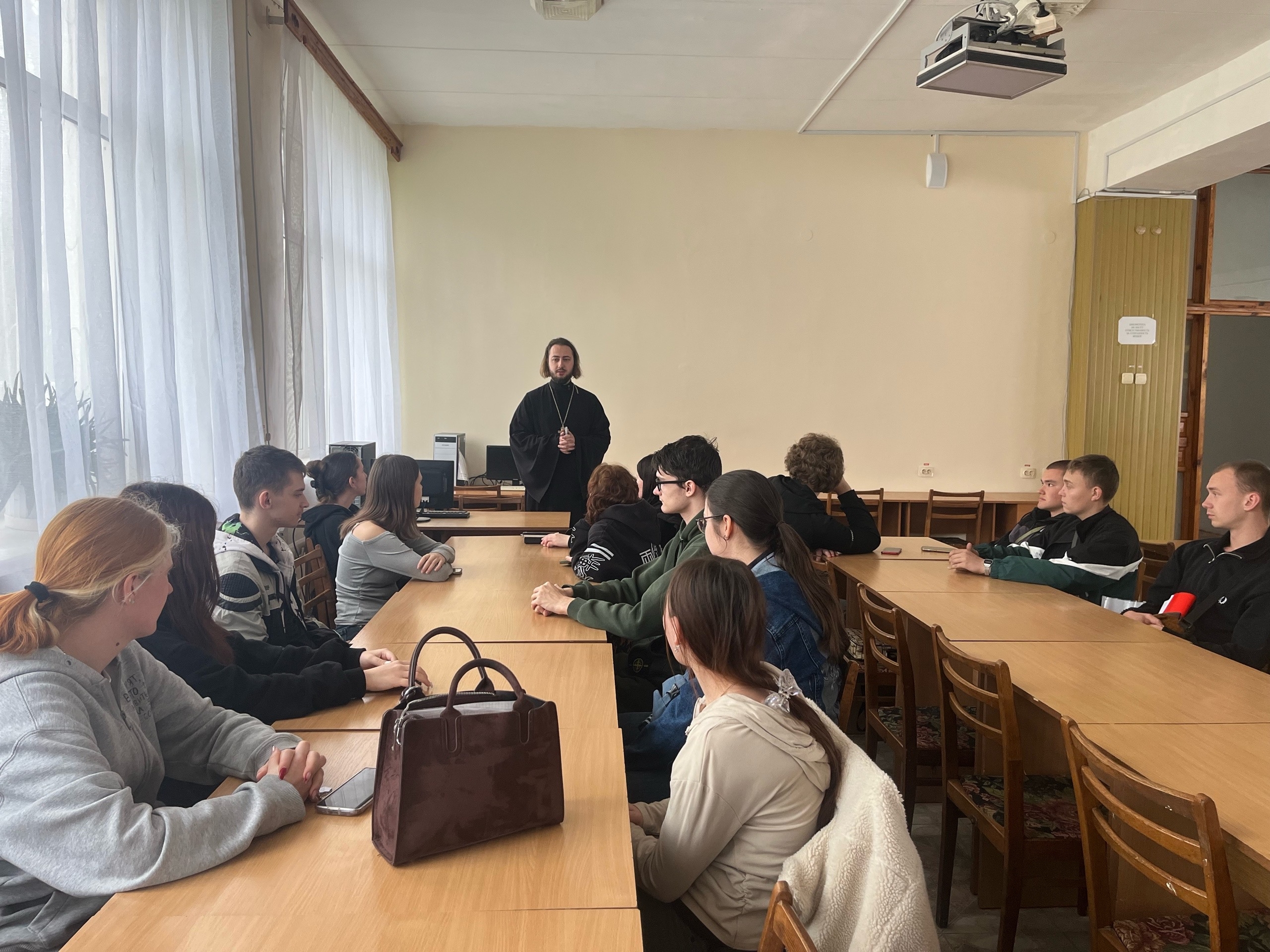 02 марта 2026 года, в читальном зале библиотеки Прибрежненского аграрного колледжа продолжился цикл духовно-просветительских встреч с иереем Валерием Голод настоятелем храма Корсунской иконы Божией Матери села Лесновка Сакского района.