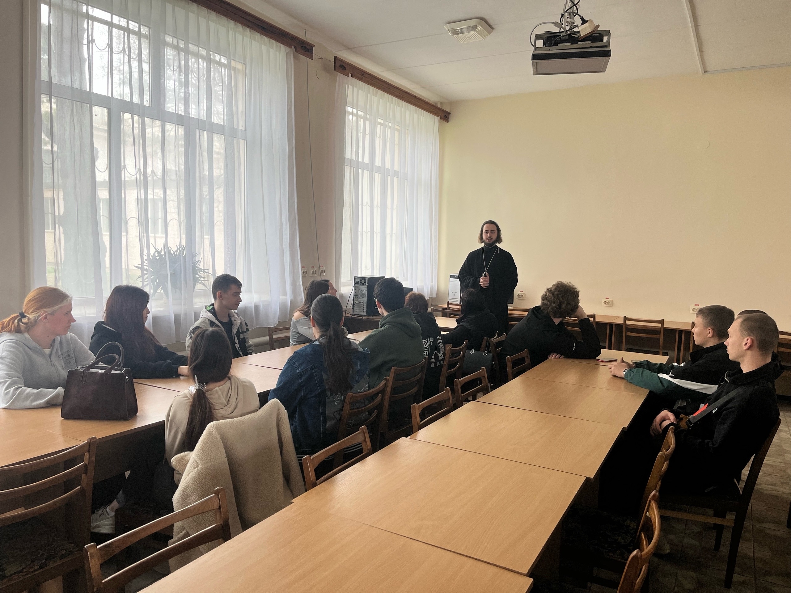 В беседе с обучающимися церковнослужитель затронули важные темы поиска смысла жизни и своего призвания. Особое внимание было уделено теме эзотерики и астрологии в жизни человека.
