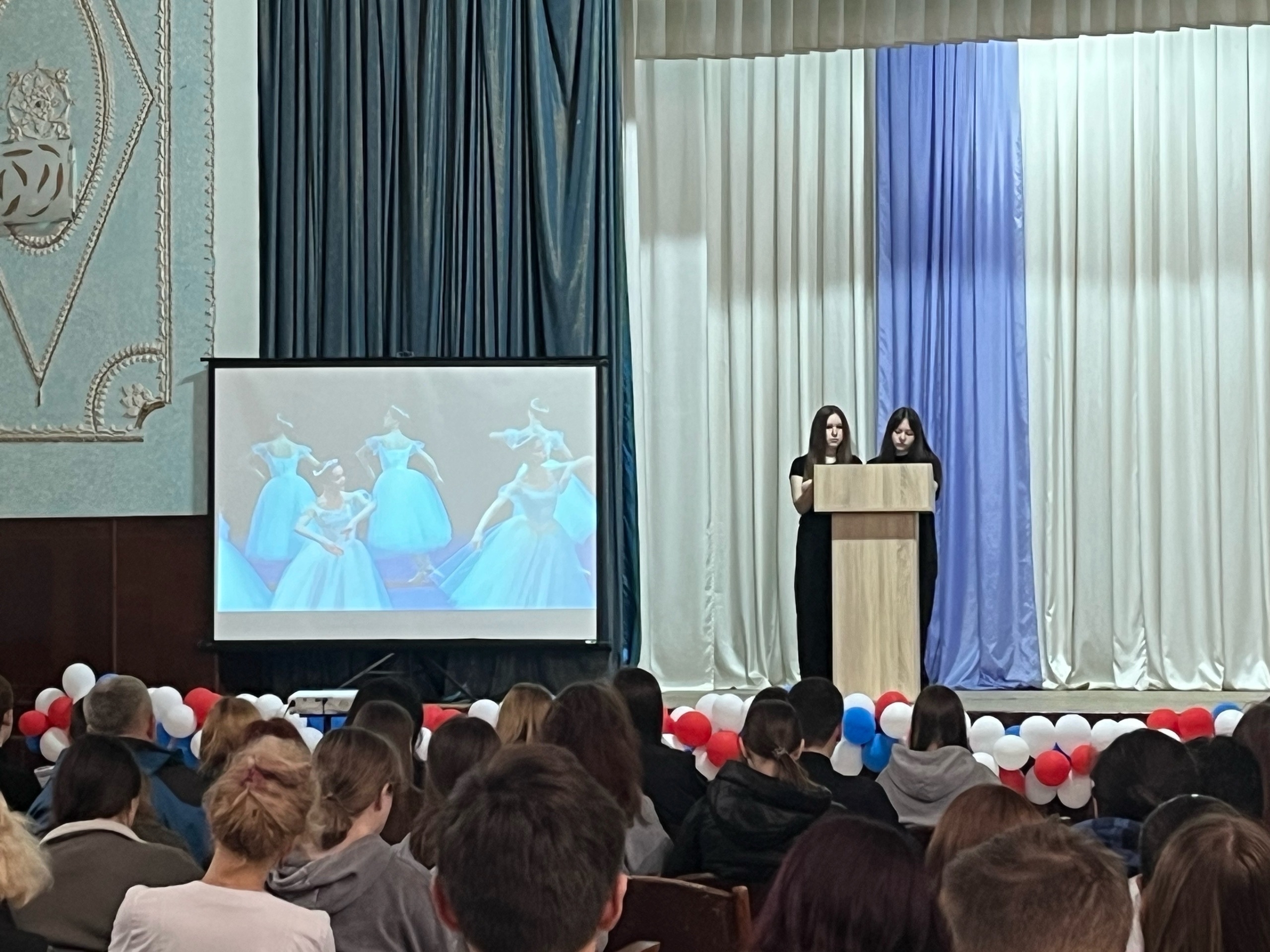 8 апреля 2026 года в актовом зале Прибрежненского аграрного колледжа под руководством преподавателя Н.Н. Гуменюк состоялась линейка из цикла «Разговоры о важном» на тему «Большой. За кулисами. 250 лет Большому театру и 150 лет Союзу театральных деятелей России», где федеральным спикером выступил Валерий Гергиев, народный артист России, генеральный директор Большого театра, художественный руководитель и директор Мариинского театра, сопредседатель Союза театральных деятелей России по музыкальному направлению. Обучающиеся 11.1-В группы рассказали присутсвующим, что Большой театр считается национальным достоянием и одним из главных символов России.