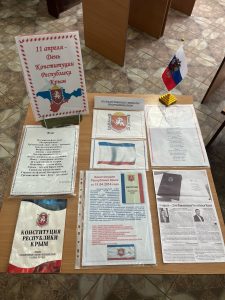 В преддверии празднования Дня Конституции Республики Крым, в читальном зале библиотеки колледжа оформлена книжная выставка «11 апреля – День Конституции Республики Крым». На выставке представлены книжные издания, газетные статьи и иллюстрированный материал, повествующие об истории становления Крымской государственности на современном этапе, также – текст Конституции Республики Крым. Книги и материалы, представленные на выставке, познакомят читателей с историей создания Конституции Республики Крым, основными ее статьями, историей возникновения государственных символов – герба, флага и гимна Республики.