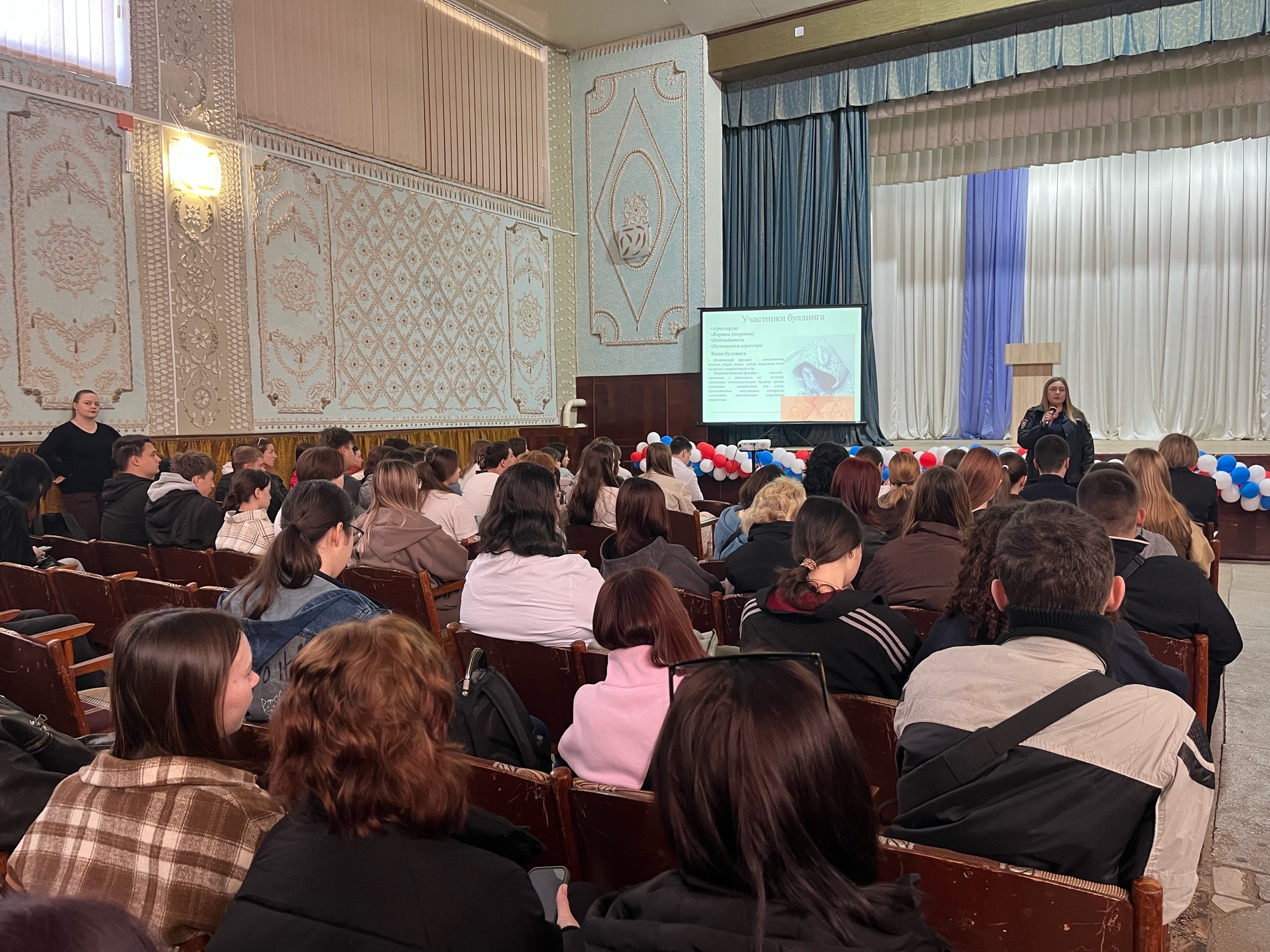 Спикер поговорила со студентам о вреде употребления наркотиков, алкогольной и никотинсодержащей продукции и нормативно-правовом аспекте, регулирующем ответственность за приобретение, хранение, перевозку, изготовление, переработку и торговлю наркотическими средствами, психотропными веществами или их аналогами.
